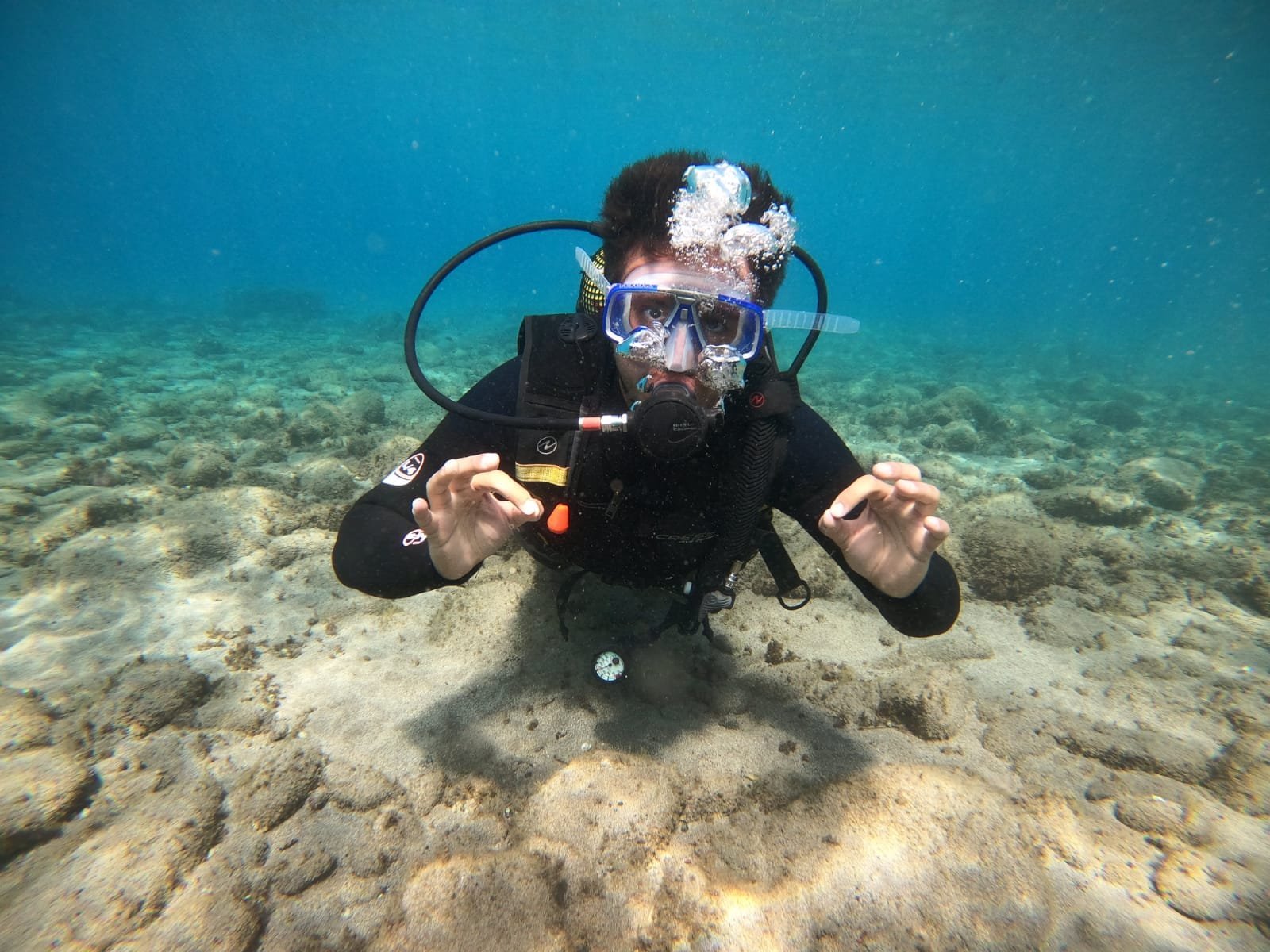 One of the brave divers from our beginners class, 12 meters underwater